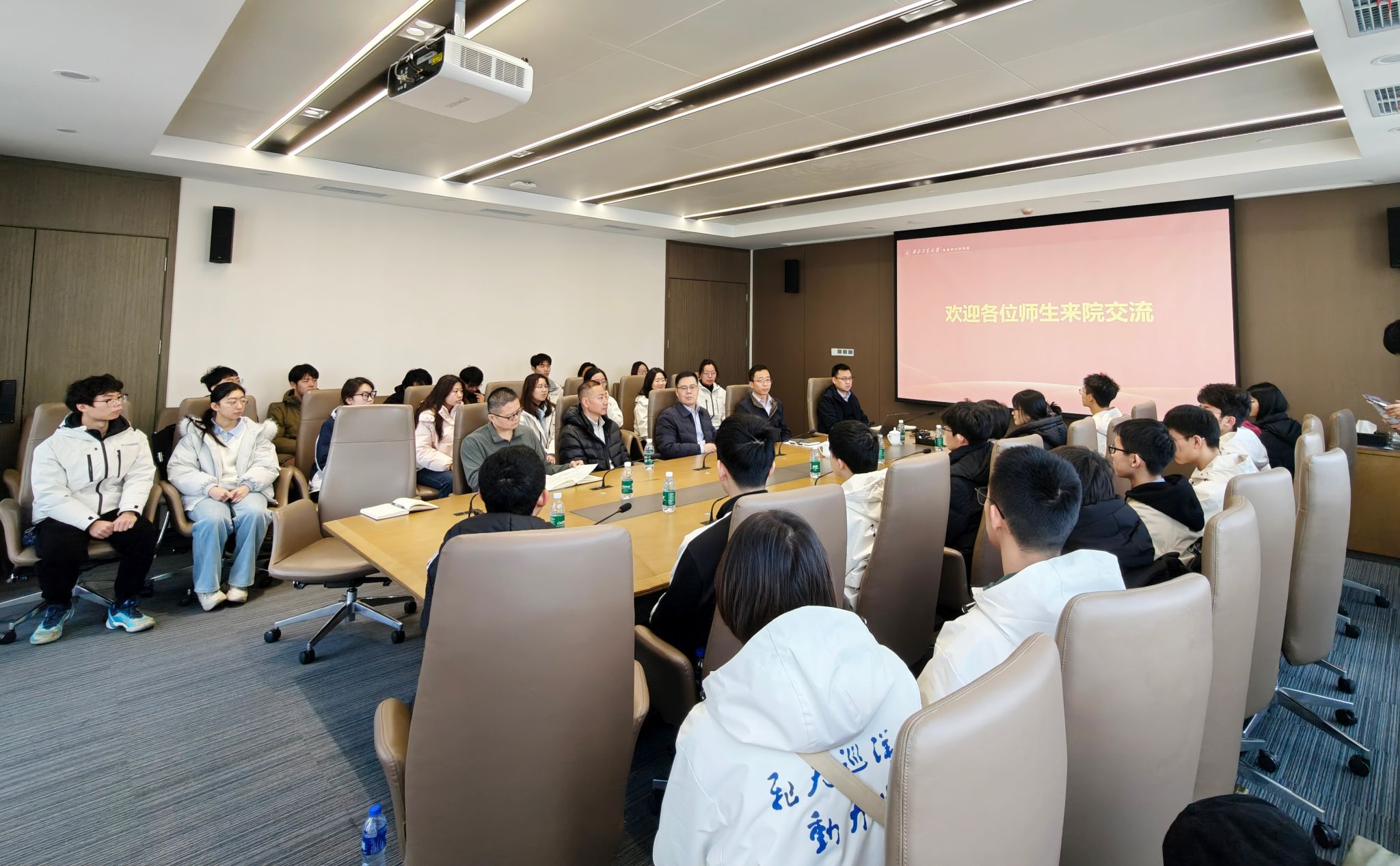 朱雪飞副院长在交流中结合自身经历与行业洞察,为学生们提出了三点核心建议:一是重视身体健康,养成运动习惯;二是树立人生目标,尽早明确职业方向;三是把握时代机遇,保持学习动力,长远看待职业发展。